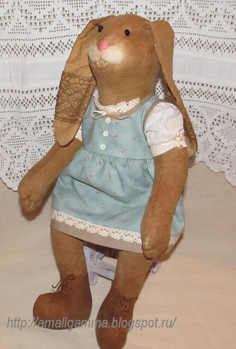 Это история Зайки, которая была.... Зайчиком. Не секрет, что игрушки сдаются в разные магазины и галереи и какое-то время там живут. В разных местах к игрушкам относятся по-разному. Бывает, что они задерживаются там надолго, тогда приходится забирать их домой. Увы, иногда в плачевном состоянии. В плачевном в том смысле, что плакать хочется мне, как создателю... Но ситуацию исправлять нужно и я берусь за реставрацию. А так как зайчиков на тот момент было много, а девочек почти не осталось, я решила, что на выходе будет девочка. По-моему, не плохая получилась. Но когда я рассказала о переделке владелице галереи, та с ходу назвала зайку трансвеститом (правильно хоть я это слово написала). Может, поэтому Зайка не нашла новый дом на Блошке, ведь Хозяйка галереи продает только те игрушки, которые ей нравятся. Не знаю, поживем-увидим. Вот она, очаровашка - кто скажет, что это мальчик, пусть... (далее по тексту)
